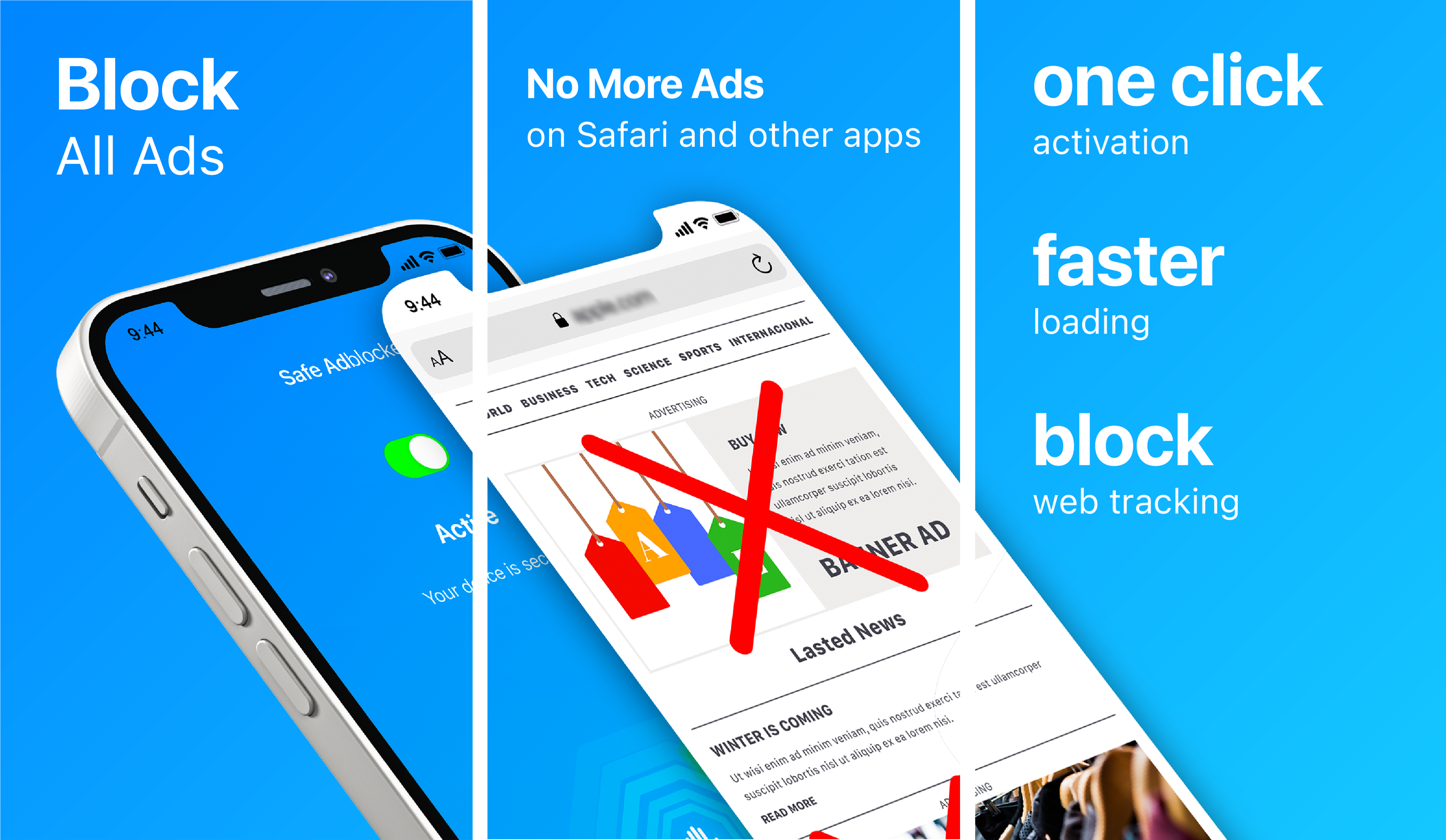 Block all types of ads, such as banners, pop-ups, video ads and much more;